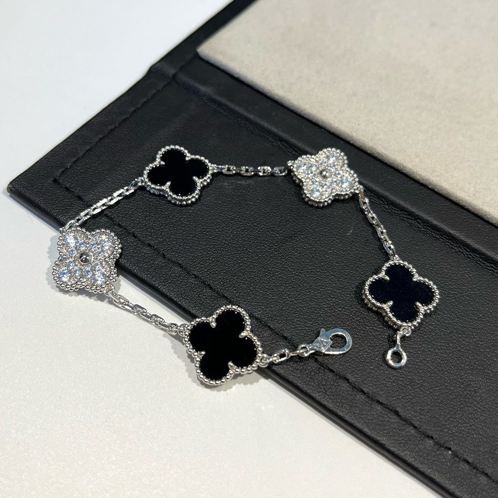 【Valleron Jewelry】CLOVER 5 MOTIF ONYXS DIAMOND BRACELET SILVER