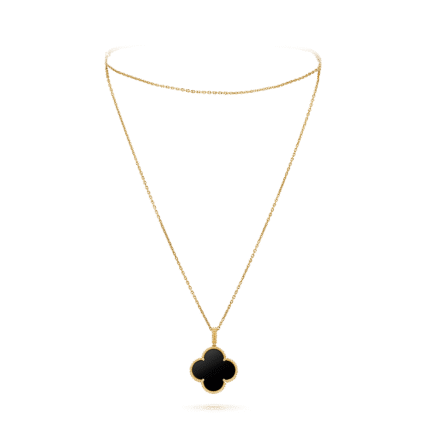 【Valeron Jewelry】CLOVER 25MM GOLD ONYX BIG CLOVER NECKLACE