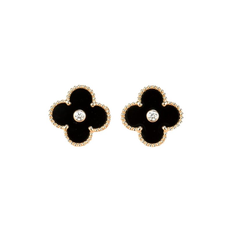 【Valeron Jewelry】CLOVER MEDIUM 1 MOTIFS ONYX DIAMOND EARRINGS
