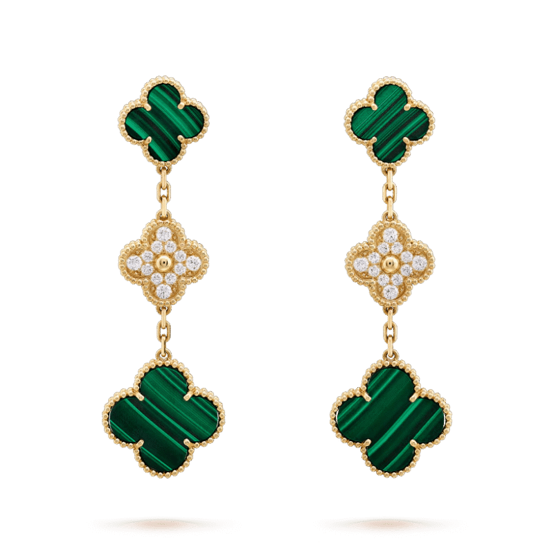 【Valeron Jewelry】CLOVER EARRINGS GOLD MALACHITE DIAMOND 3 MOTIF