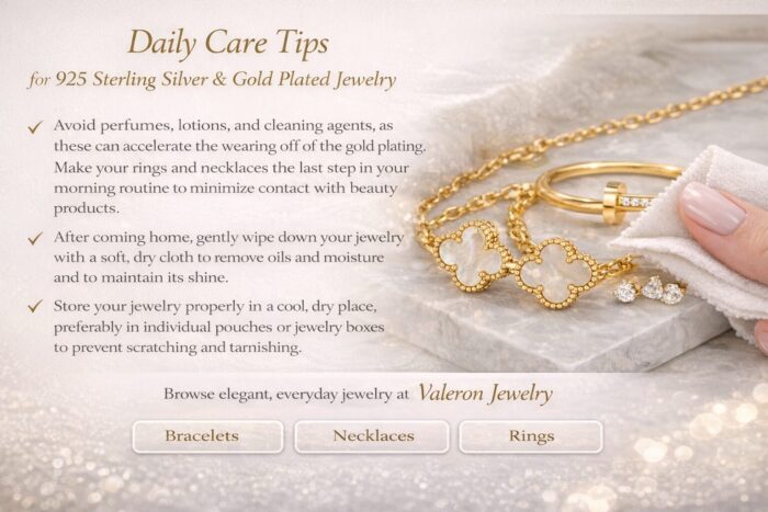 With proper care, 925 sterling silver and gold plated jewelry can maintain their beauty and shine for a long time.